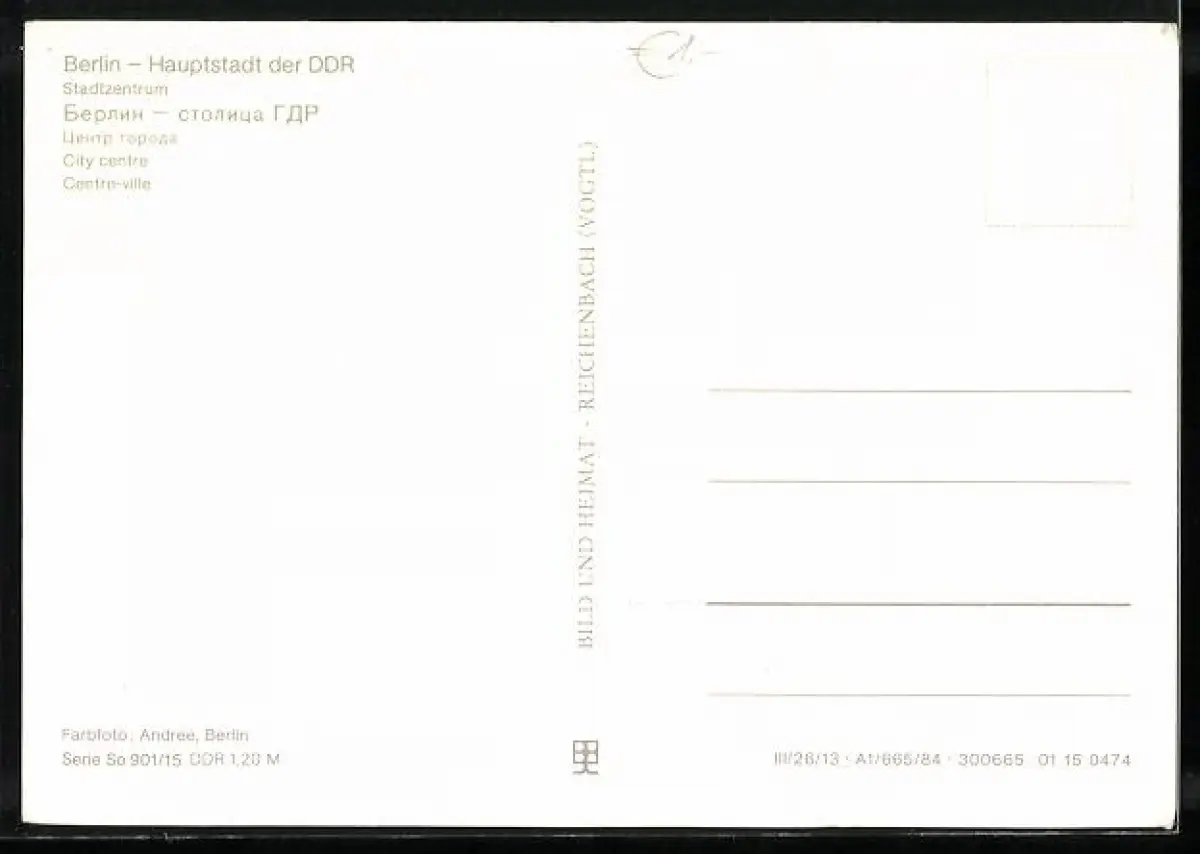 Personenbezogene Daten auf der Rückseite der Karte wurden durch blauen Textmarker unkenntlich gemacht. Die blauen Stellen sind auf die Vorderseite durchgeweicht und wirken sich negativ auf das Postkartenfoto aus
