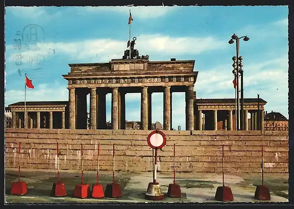 AK Berlin, Blick über die Mauer auf das Brandenburg Tor
