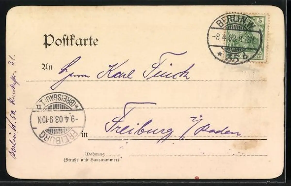 alte Ansichtskarte, gelaufen 1903, Ecken beschnitten
