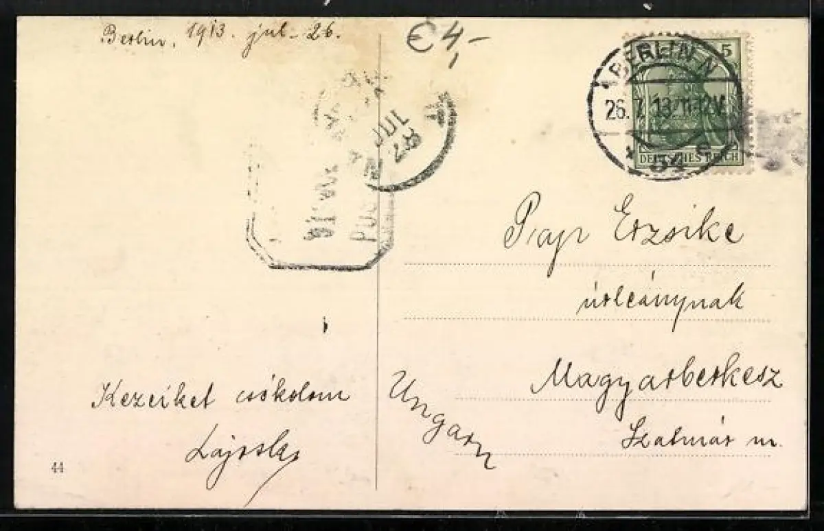 alte Ansichtskarte, gelaufen 1913, Stempelspur, guter Zustand