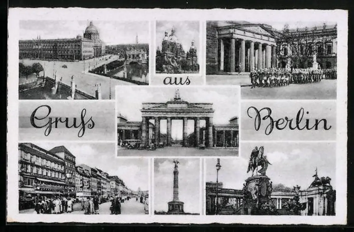 AK Berlin, Brandenburger Tor, Siegessäule, Dom