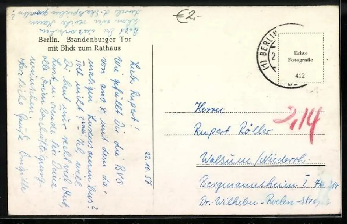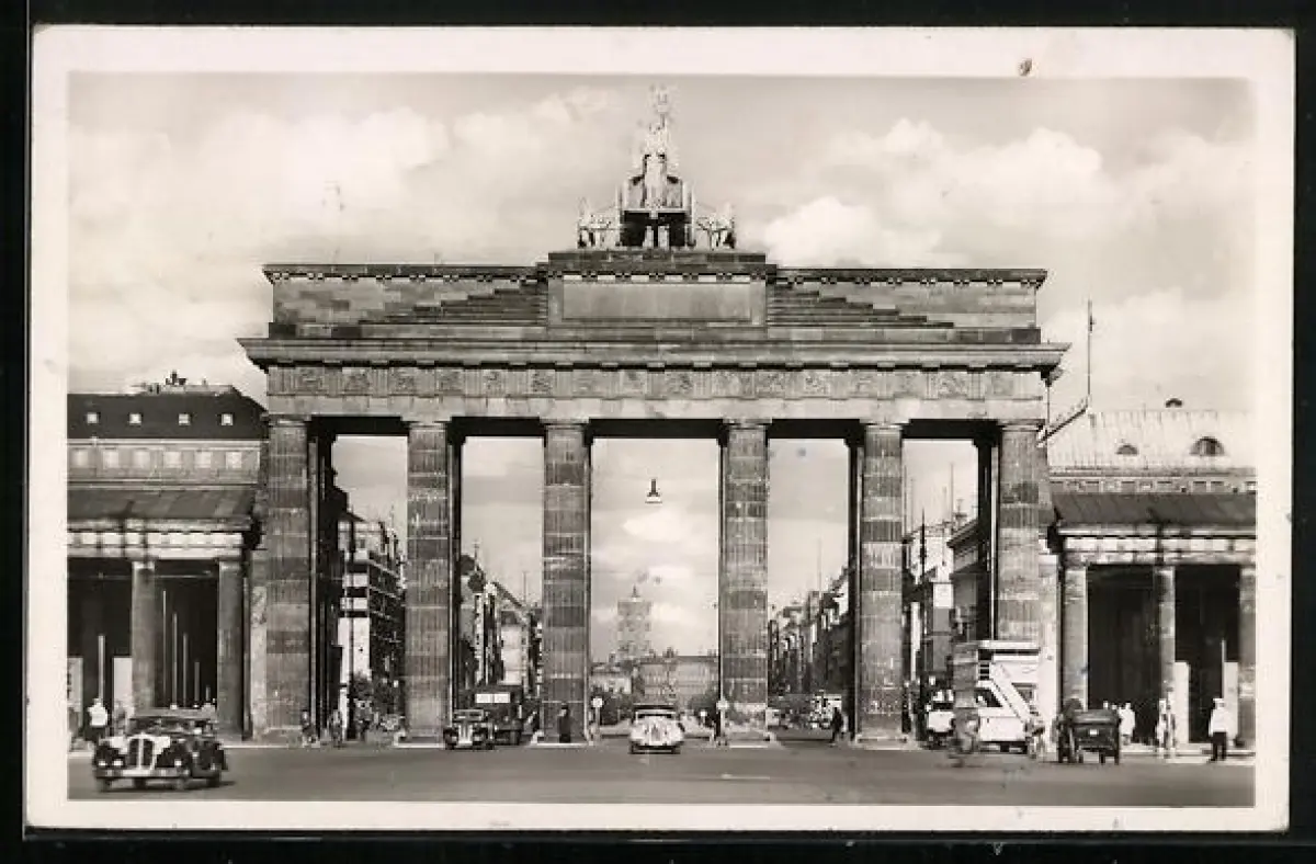 AK Berlin, Brandenburger Tor mit Blick zum Rathaus