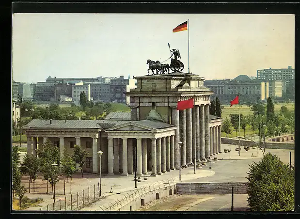 AK Berlin, Brandenburger Tor mit Mauer mit Todesstreifen, Grenze