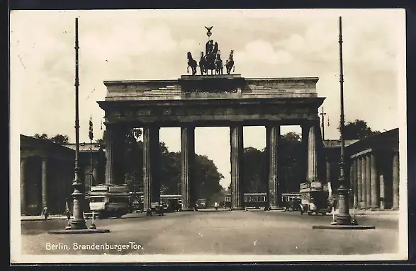 AK Berlin, Brandenburger Tor mit Strassenbahn