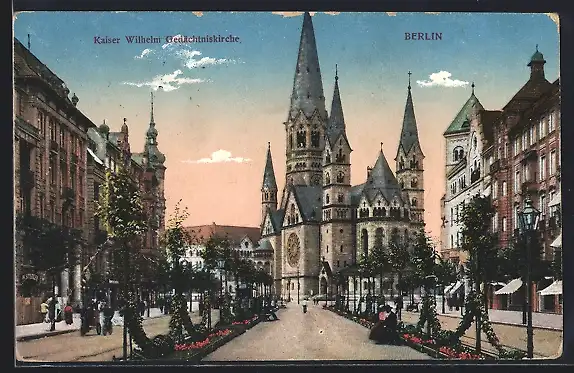 AK Berlin-Charlottenburg, Strassenpartie an der Kaiser Wilhelm Gedächtniskirche
