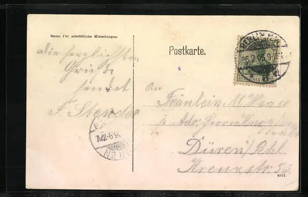 alte Ansichtskarte, gelaufen 1906, Eckknick li. oben, guter Zustand