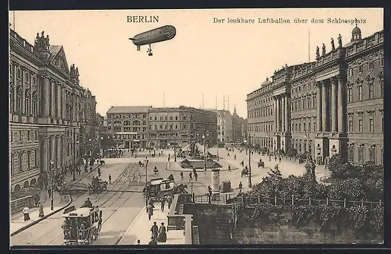 AK Berlin, Der lenkbare Luftballon über dem Schlossplatz, Zeppelin
