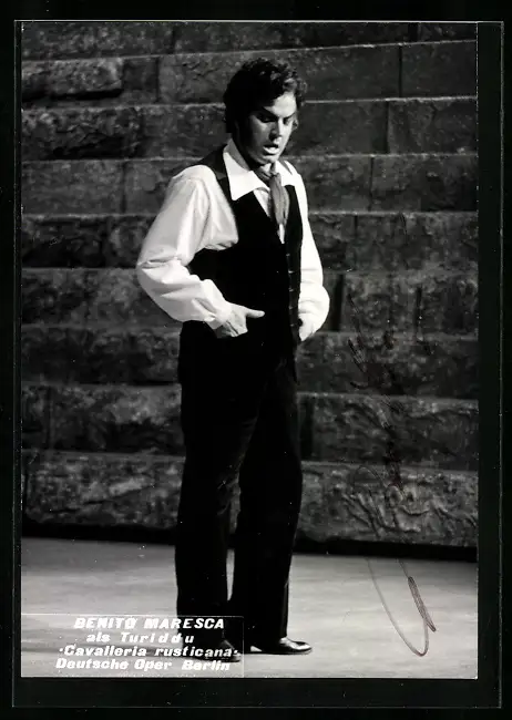 AK Berlin, Deutsche Oper, Opernsänger Benito Maresca als Turiddu in Cavalleria rusticana, Autograph