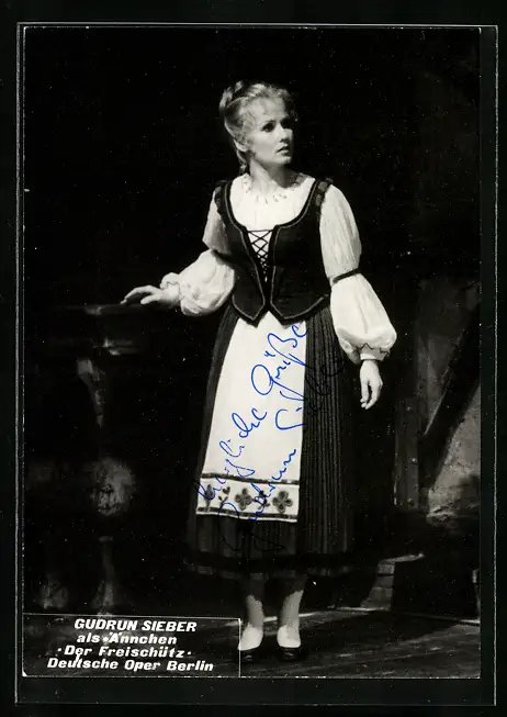 AK Berlin, Deutsche Oper, Opernsängerin Gudrun Seiber als Ännchen in Der Freischütz, Autograph