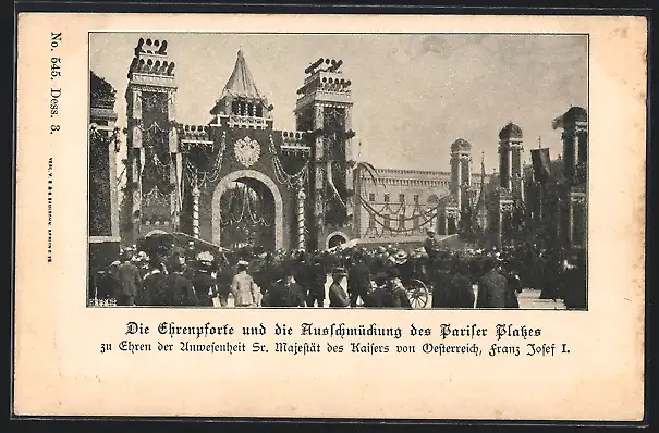 AK Berlin, Die Ehrenpforte und der geschmückte Pariser Platz zu Ehren der Anwesenheit des Kaisers von Österreich