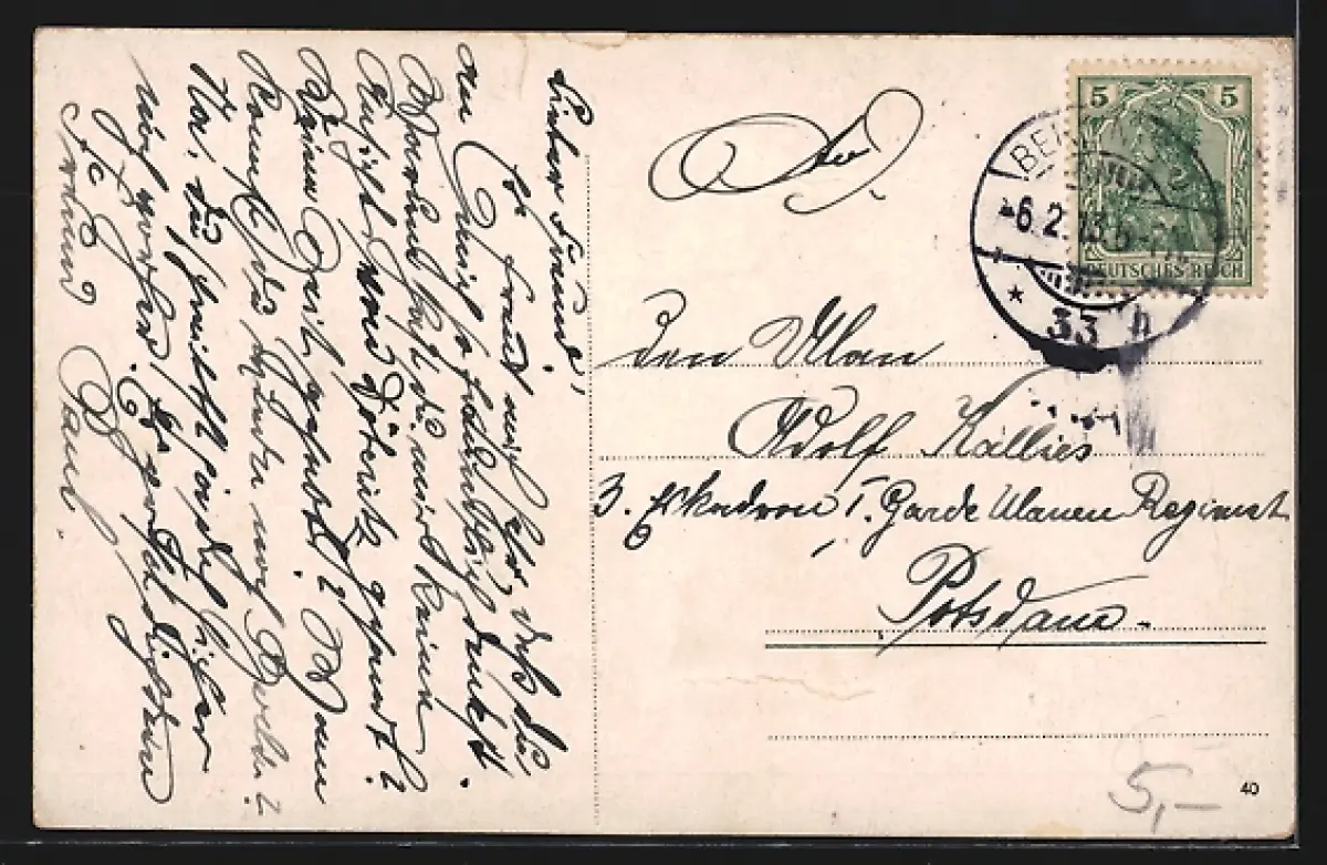 alte Ansichtskarte, gelaufen 1913, Einriss oben mittig, guter Zustand
