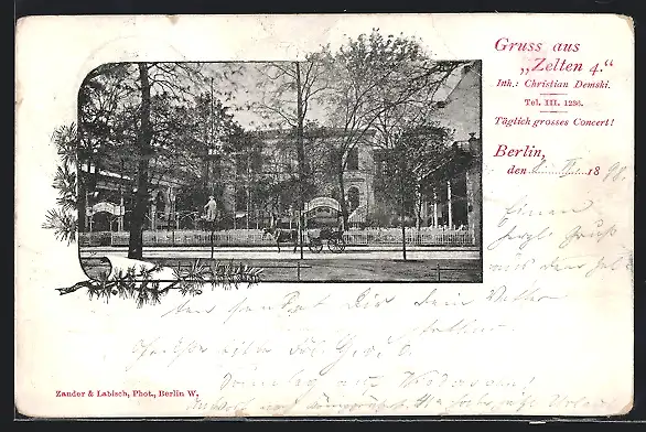 AK Berlin, Gaststätte Zelten 4 C. Demski, Ansicht von der Strasse
