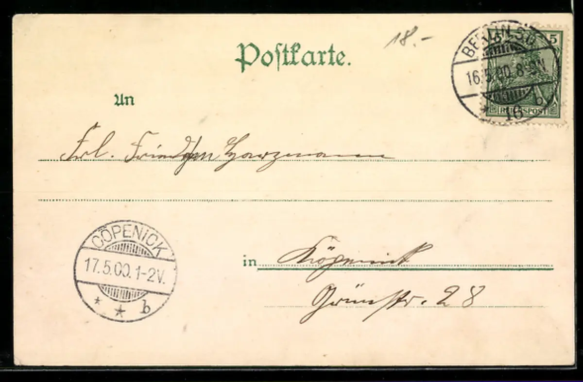 alte Ansichtskarte, gelaufen 1900, guter Zustand