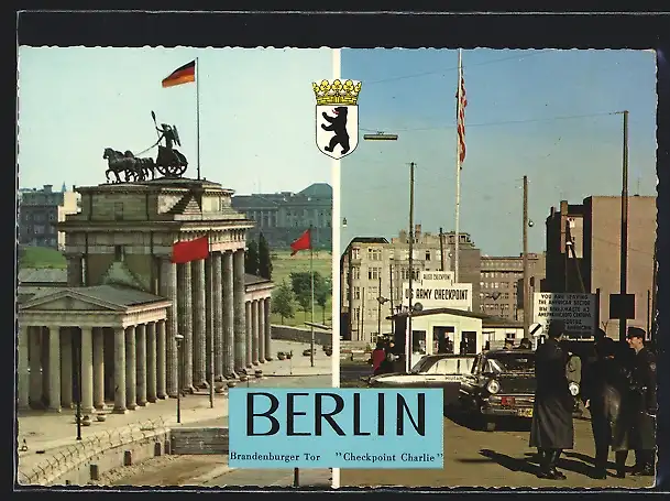 AK Berlin, Grenzanlagen am Brandenburger Tor und am Checkpoint Charlie, Wappen
