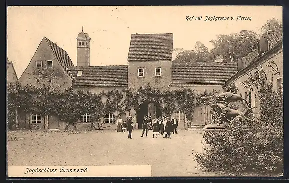 AK Berlin-Grunewald, Hof mit Jagdgruppe v. Pierson