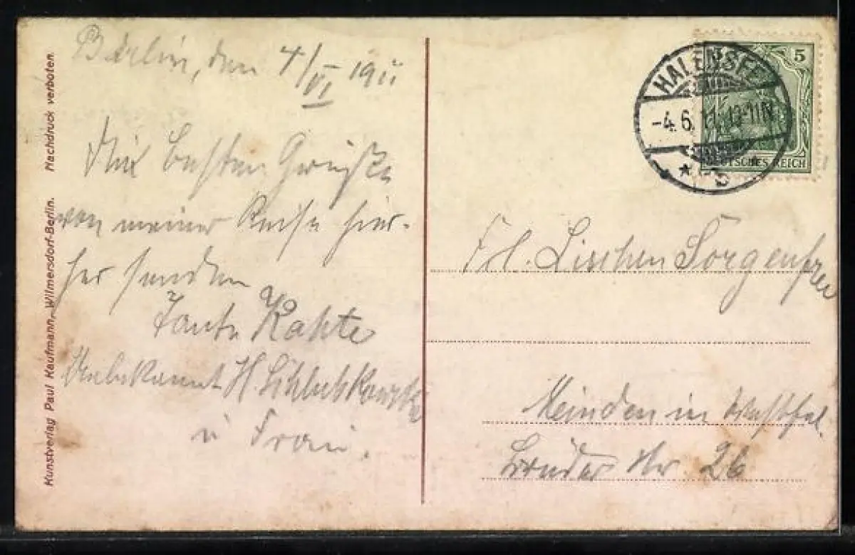 alte Ansichtskarte, gelaufen 1911, Eckknick li. oben, Stempelspur, guter Zustand