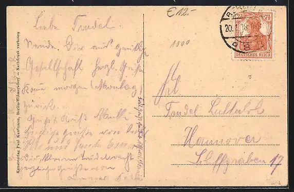 alte Ansichtskarte, gelaufen 1918, guter Zustand