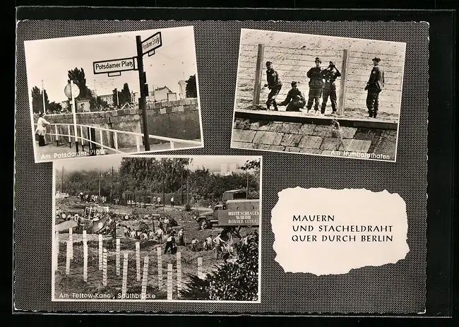 AK Berlin, Mauern und Stacheldraht quer durch Berlin, Potsdamer Platz, Teltow-Kanal, Späthbrücke, Humboldthafen