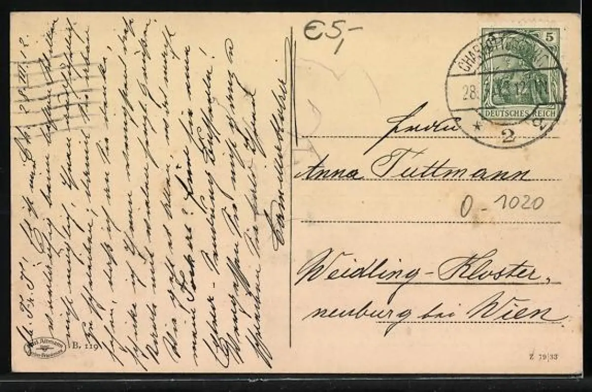 alte Ansichtskarte, gelaufen, Stempelspur, guter Zustand