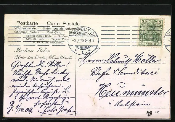 alte Ansichtskarte, gelaufen 1909, Eckknick li. oben, guter Zustand