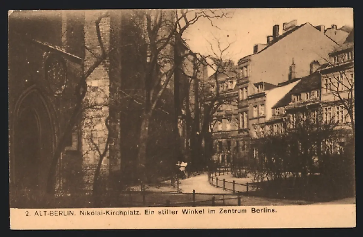 AK Berlin, Nikolai-Kirchplatz mit Wohnhäusern