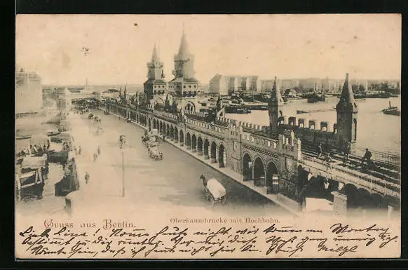 AK Berlin, Oberbaumbrücke mit Hochbahn