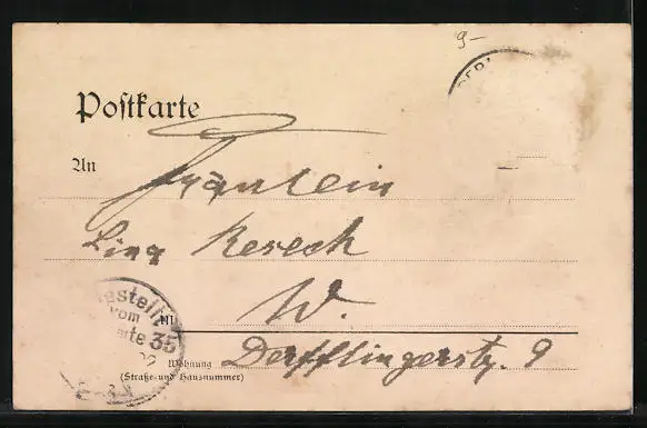 alte Ansichtskarte, gelaufen, Briefmarke entfernt, rückseitig Oberflächenschaden, guter Zustand