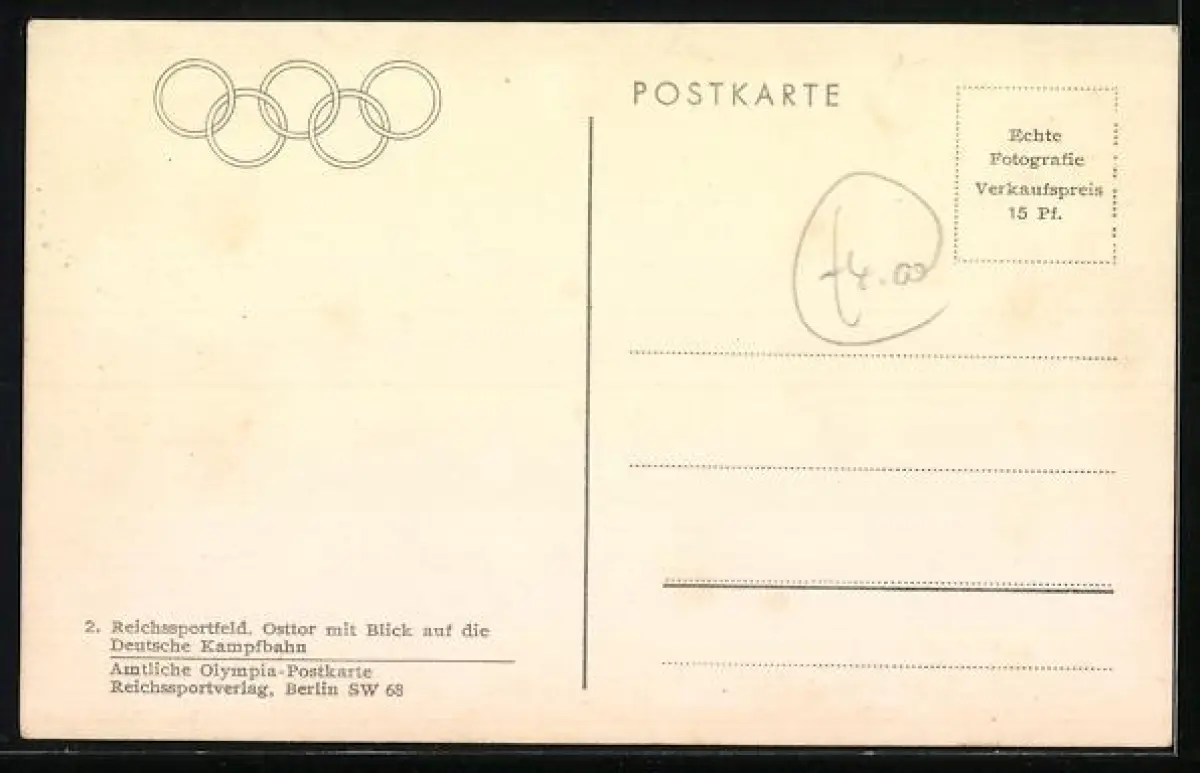 AK Berlin, Olympische Spiele 1936, Reichssportfeld, Osttor mit Blick auf die Deutsche Kampfbahn