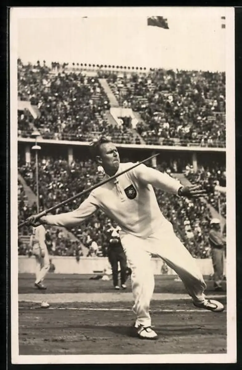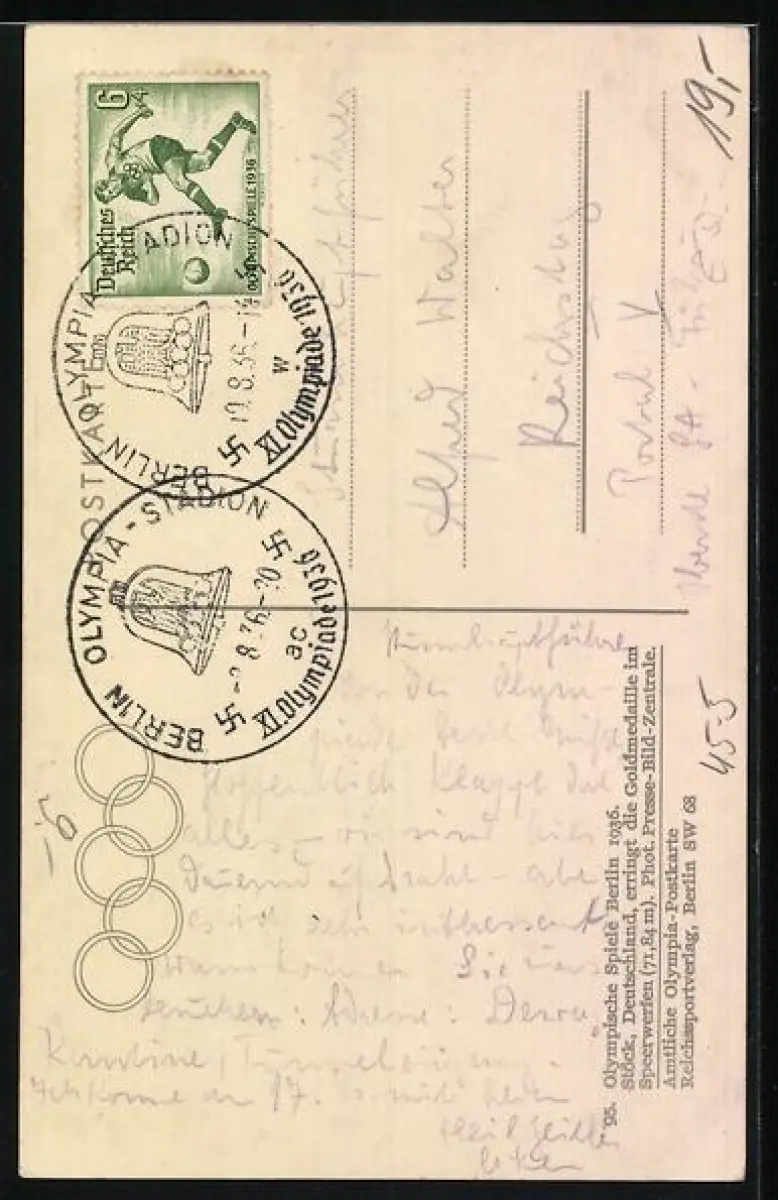 AK Berlin, Olympische Spiele 1936, Stöck, Goldmedaille im Speerwurf