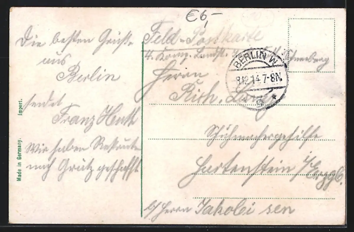 alte Ansichtskarte, gelaufen 1914, guter Zustand
