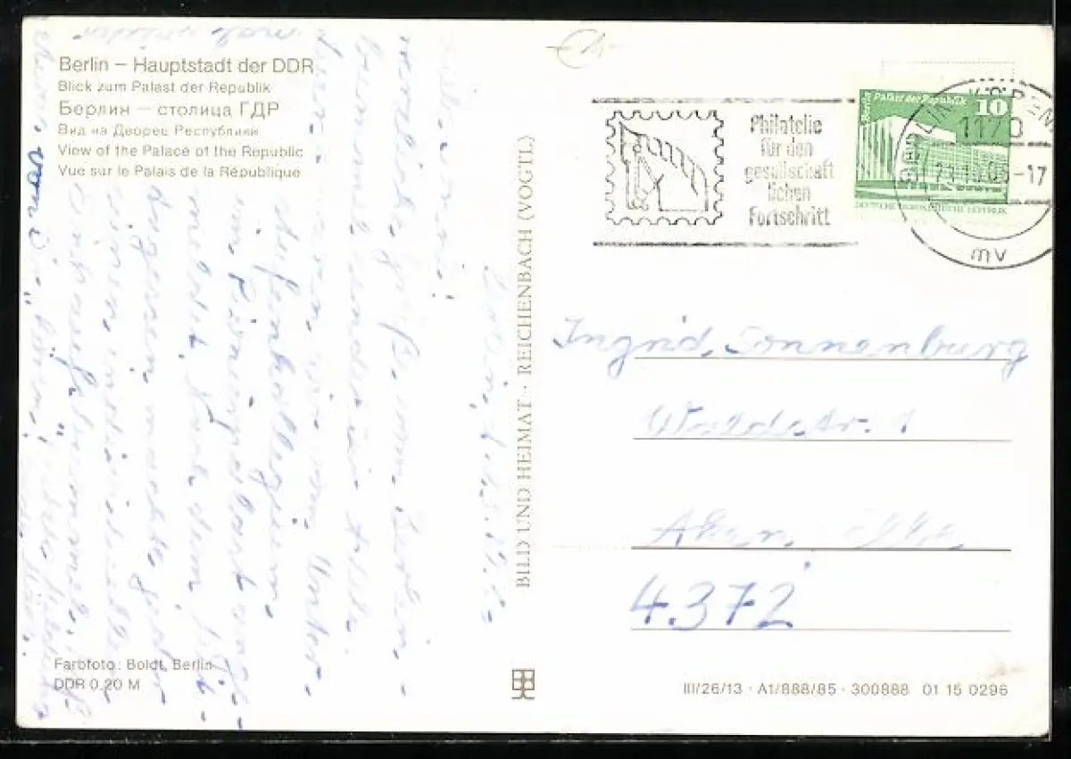 alte Ansichtskarte, gelaufen 1986, Eckknicke li., guter Zustand