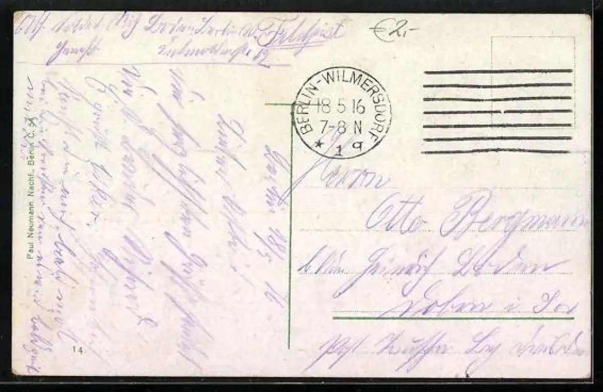 alte Ansichtskarte, gelaufen 1916, Stempelspur, guter Zustand
