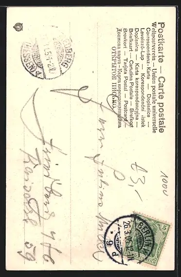 alte Ansichtskarte, gelaufen 1905, guter Zustand