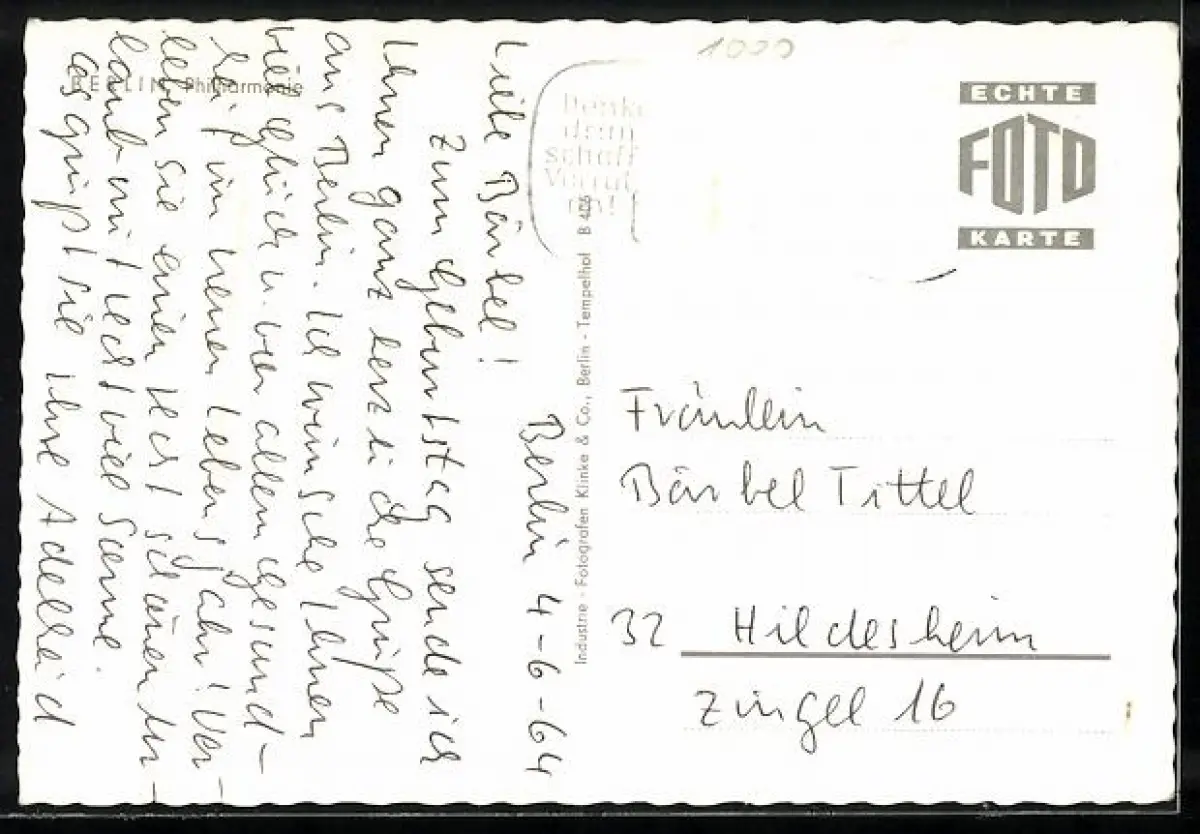 alte Ansichtskarte, gelaufen 1964, Briefmarke entfernt, guter Zustand