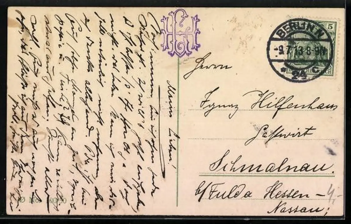 alte Ansichtskarte, gelaufen 1913, Stempelspur, guter Zustand