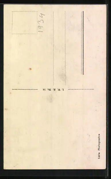 Personenbezogene Daten auf der Rückseite der Karte wurden durch blauen Textmarker unkenntlich gemacht. Die blauen Stellen sind auf die Vorderseite durchgeweicht und wirken sich negativ auf das Postkartenfoto aus
