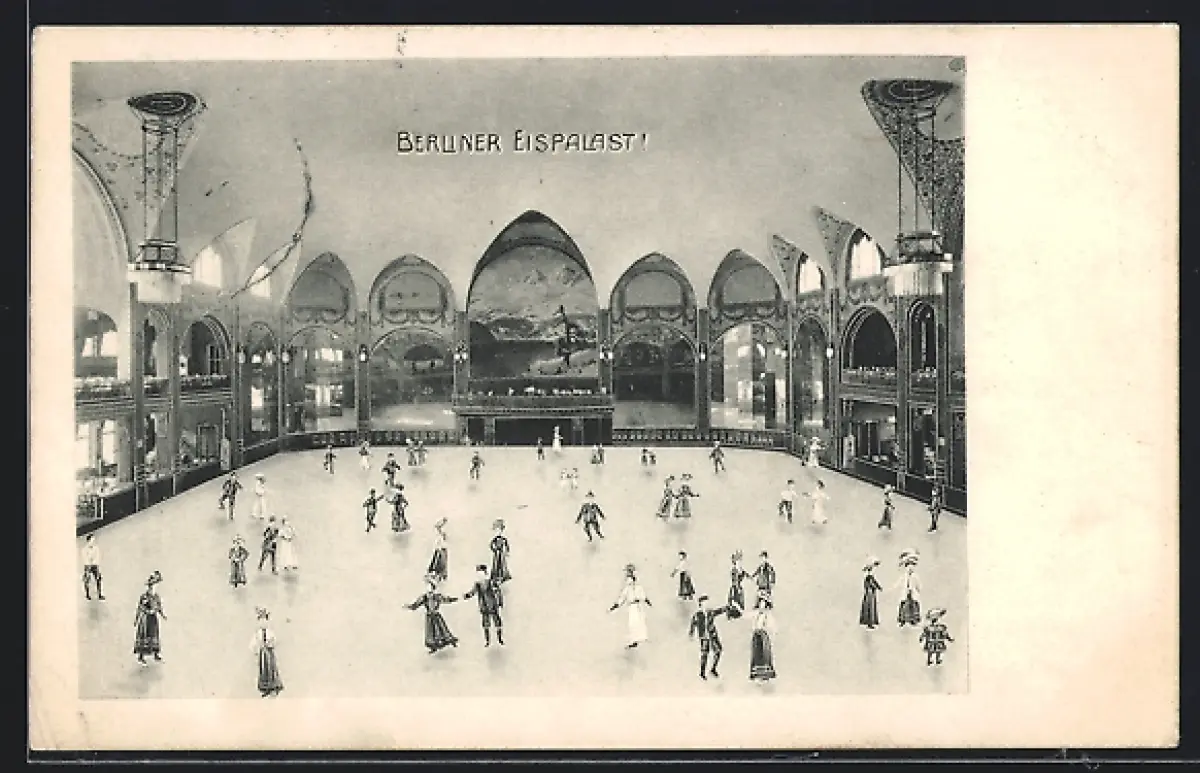 AK Berlin-Schöneberg, Schlittschuhläufer im Eispalast