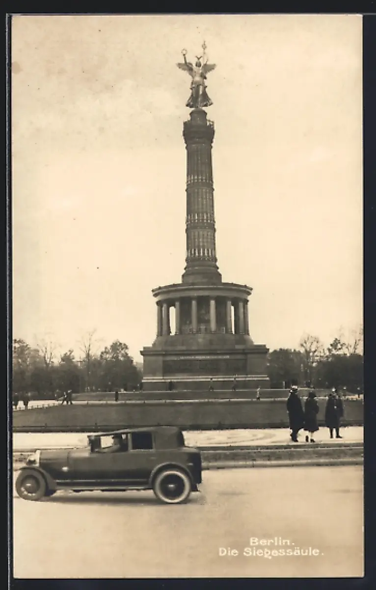 AK Berlin, Siegessäule mit Auto und Besuchern