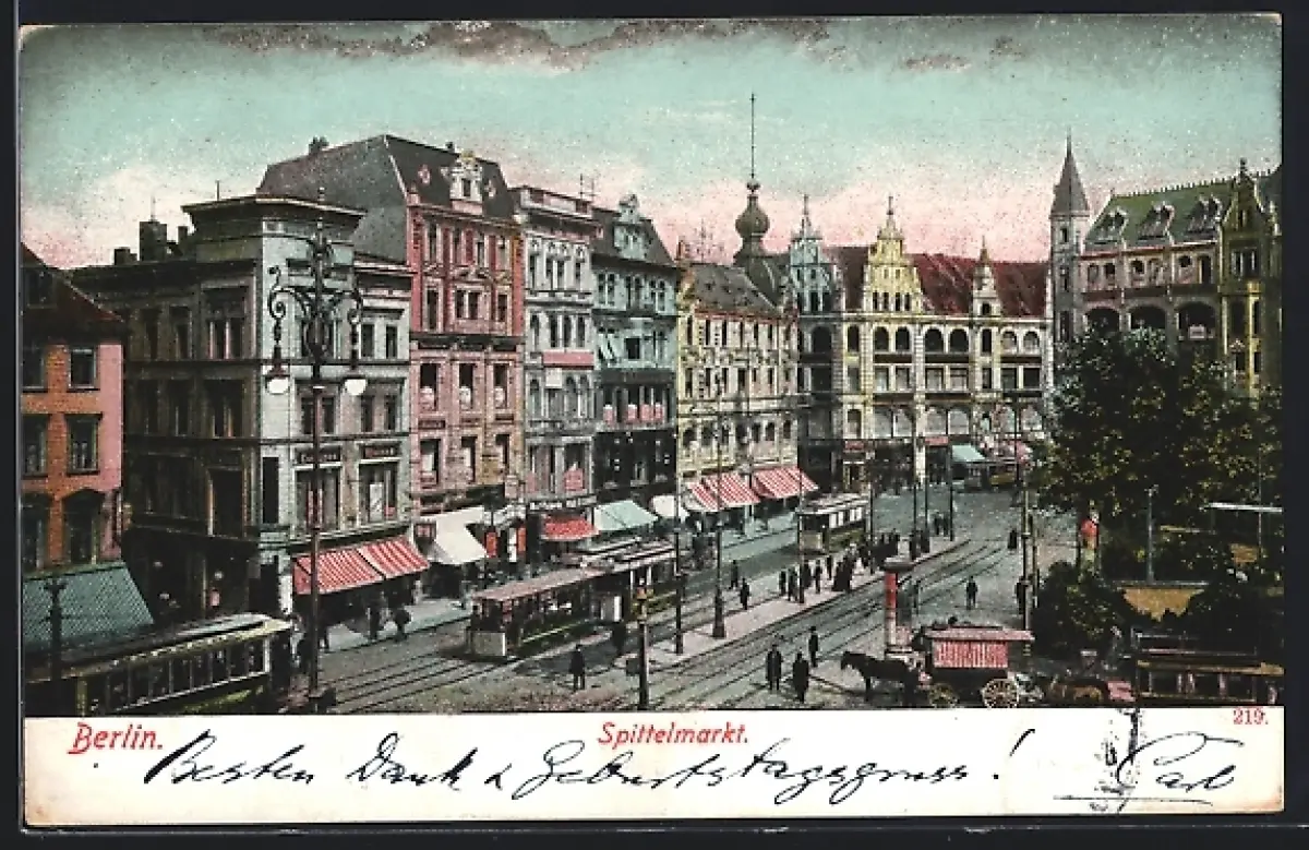 AK Berlin, Spittelmarkt, Blick auf Strassenbahnhaltestelle