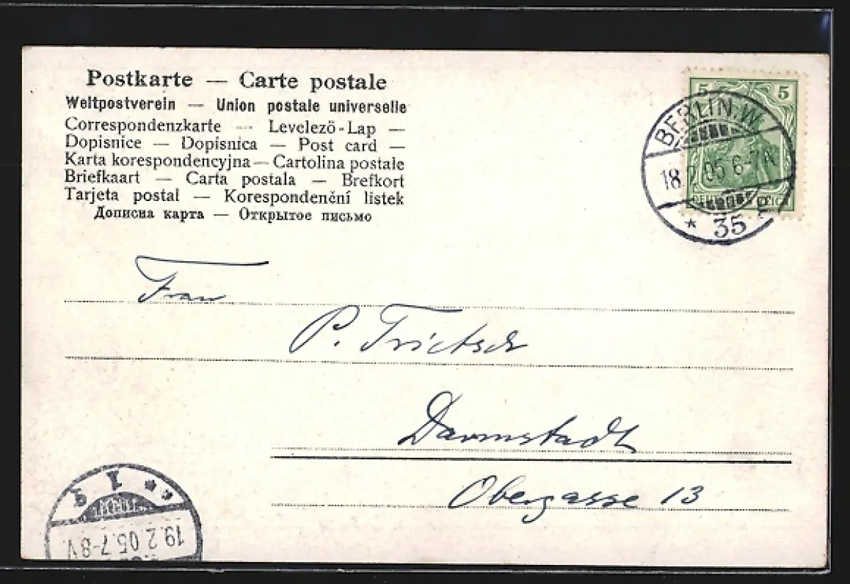 alte Ansichtskarte, gelaufen 1905, Stempelspur, guter Zustand