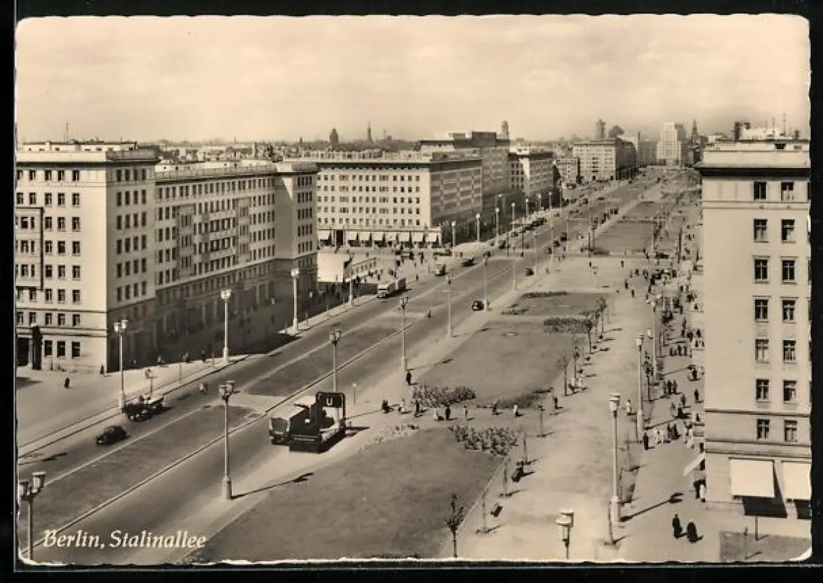 AK Berlin, Stalinallee, Ansicht aus der Vogelschau