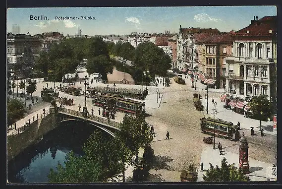 AK Berlin, Strassenbahn auf der Potsdamer Brücke