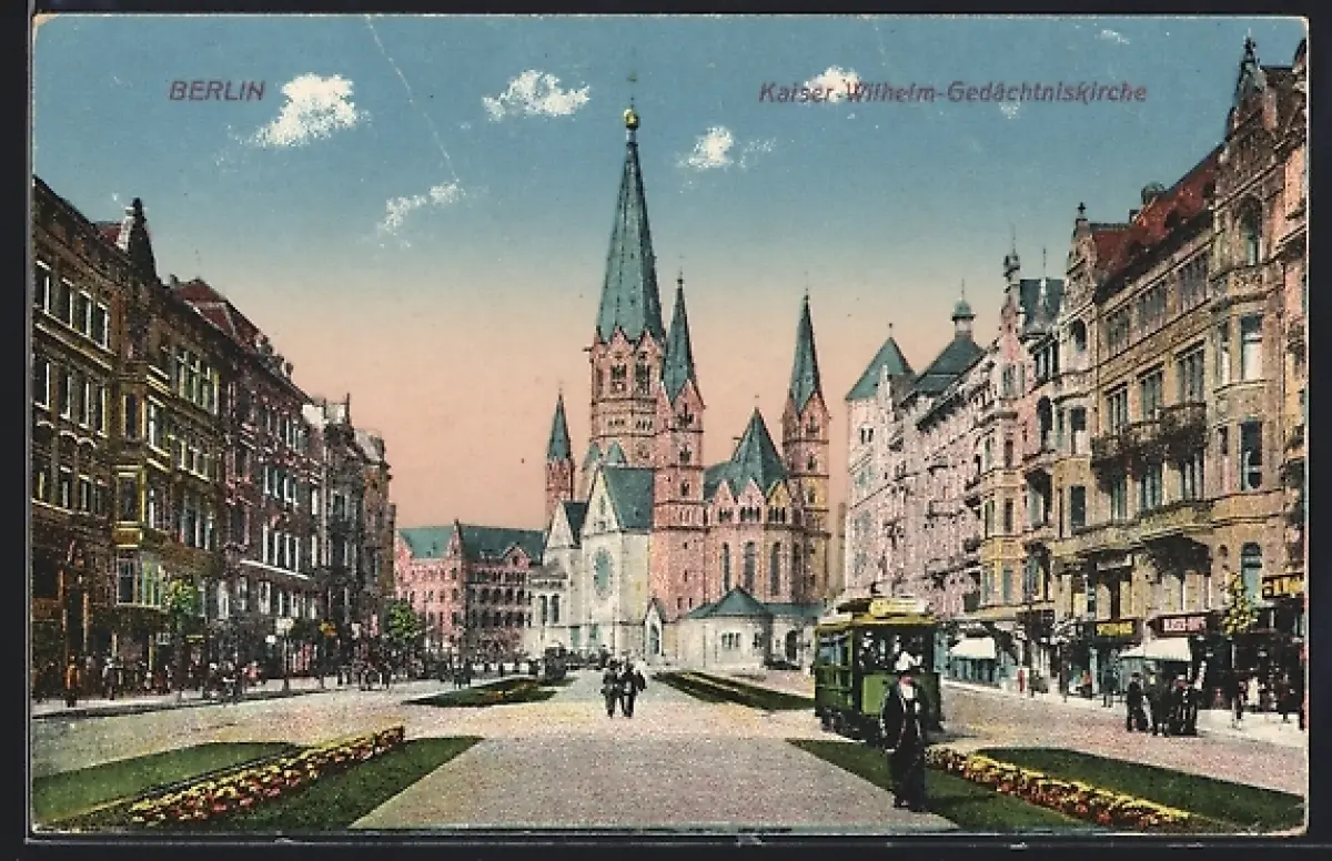AK Berlin, Strassenbahn vor der Kaiser-Wilhelm Gedächtniskirche