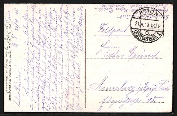 alte Ansichtskarte, gelaufen 1918, Eckknick li. oben, guter Zustand