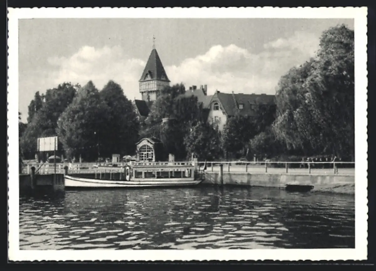 AK Berlin-Tegel, Strandschloss mit Dampferanleger