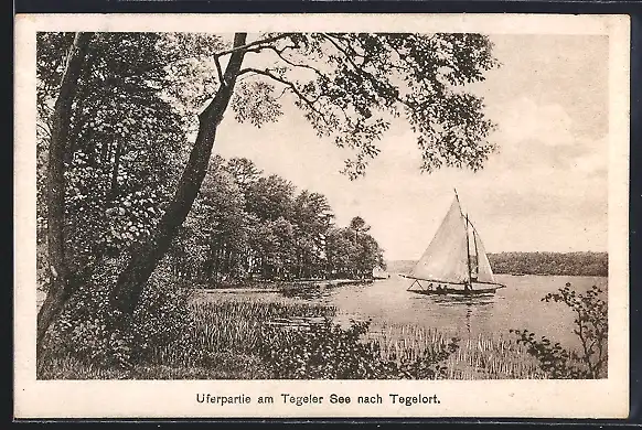 AK Berlin-Tegelort, Uferpartie mit Boot am Tegeler See