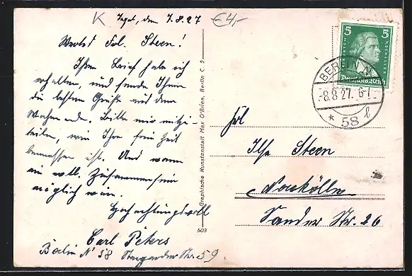 alte Ansichtskarte, gelaufen 1927, guter Zustand