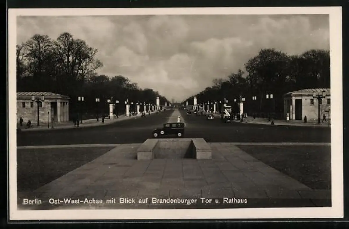 AK Berlin-Tiergarten, Ost-West-Achse mit Blick auf Brandenburger Tor u. Rathaus