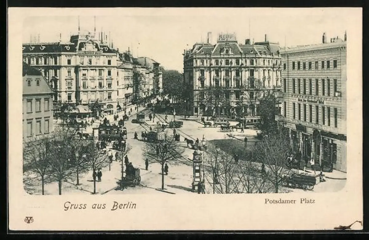 AK Berlin-Tiergarten, Pferdebahn auf dem Potsdamer Platz, Pferdegespann