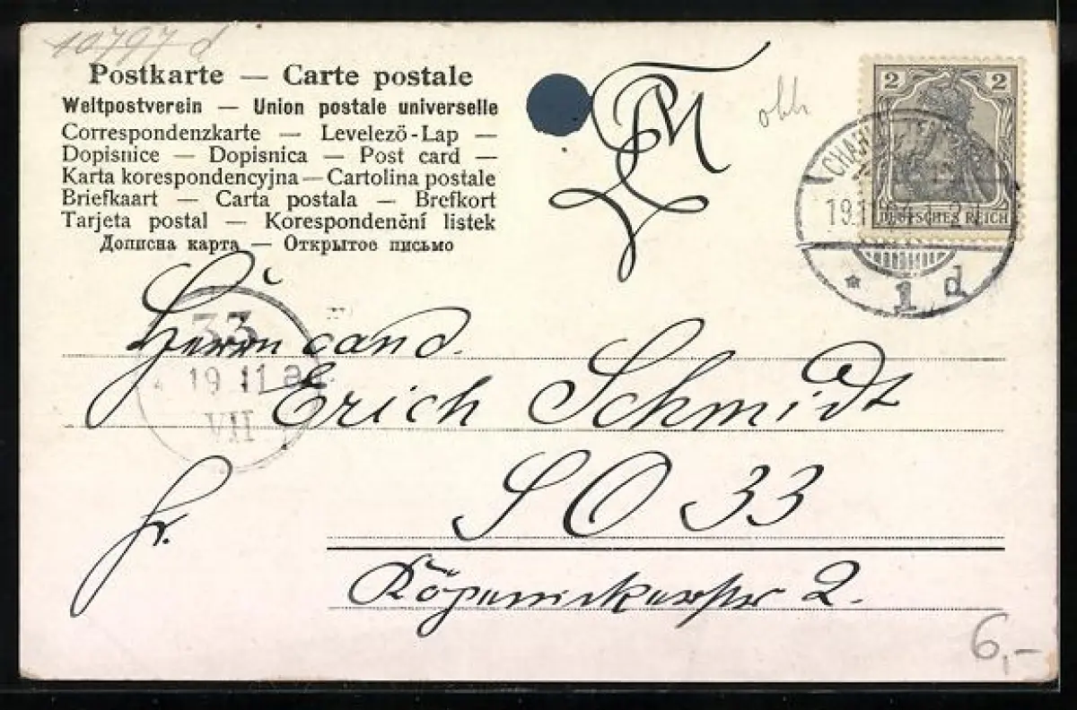 alte Ansichtskarte, gelaufen 1904, Stempelspur, guter Zustand